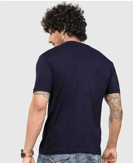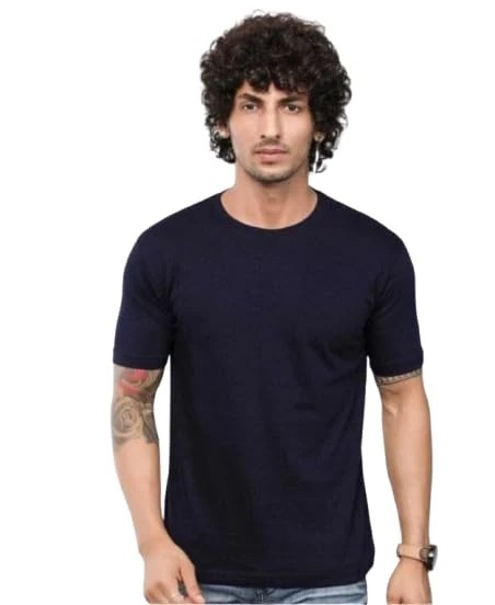 Classic Cotton T-Shirt, Olive Green, Short Sleeve, Crew Neck, Casual Wear (in, Alpha, L, Navy)