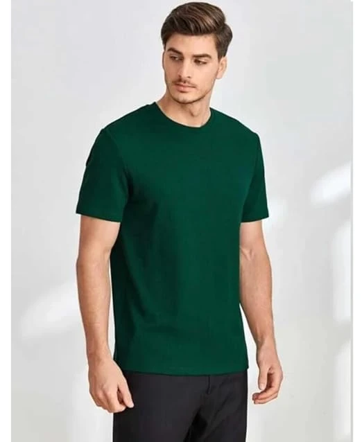 Classic Cotton T-Shirt, Short Sleeve, Crew Neck, Casual Wear (in, Alpha, Small, Bottle Green)