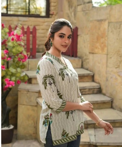 Cream Rayon Slub Elegant Formal Top For Women
