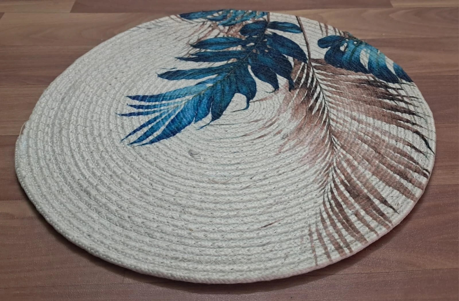 Decorative Round Cotton Table Placemat, Round Shape, Size - 15Inch, Best for Side Table, Center Table, Washable Placemat, Dinning Table Shelves Pack of 1 (Style 7)
