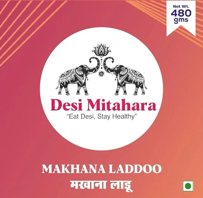 DESI MITAHARA – Makhana Ladoo - Made with Makhana, Jaggery & Cow Ghee - Traditional Indian Sweet - Healthy, Nutritious Snack - 360g Pack - No Artificial Colours - Suitable for All Ages