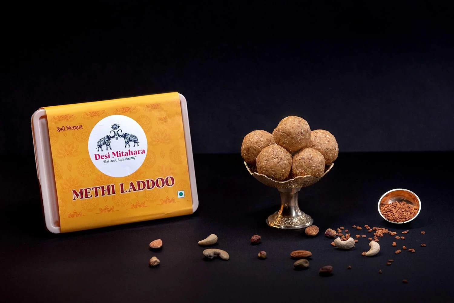 DESI MITAHARA – Methi, Nachani, Multigrain Ladoo Combo Pack - Prepared with Natural Ingredients - Traditional Indian Sweet - 480g Pack - No Artificial Colours - Suitable for All Ages