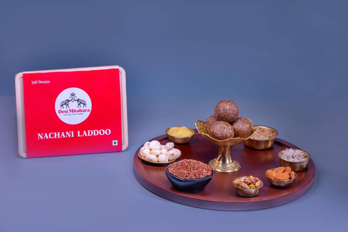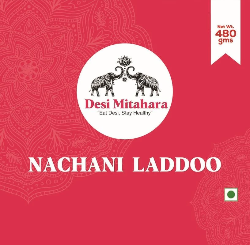DESI MITAHARA – Nachani Ladoo - Made with Ragi, Jaggery & Cow Ghee - Traditional Indian Sweet - Healthy, Nutritious Snack - 480g Pack - No Artificial Colours - Suitable for All Ages