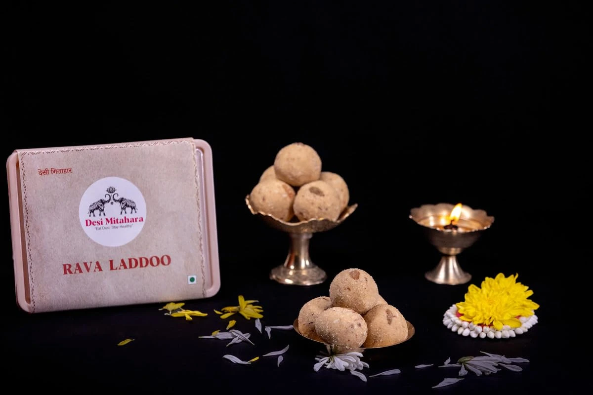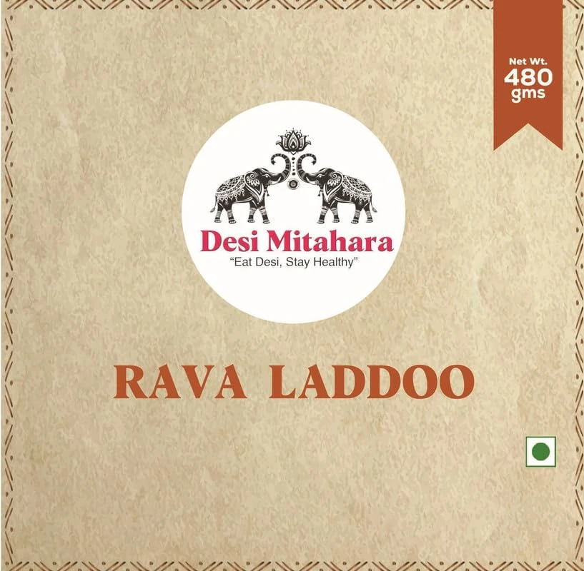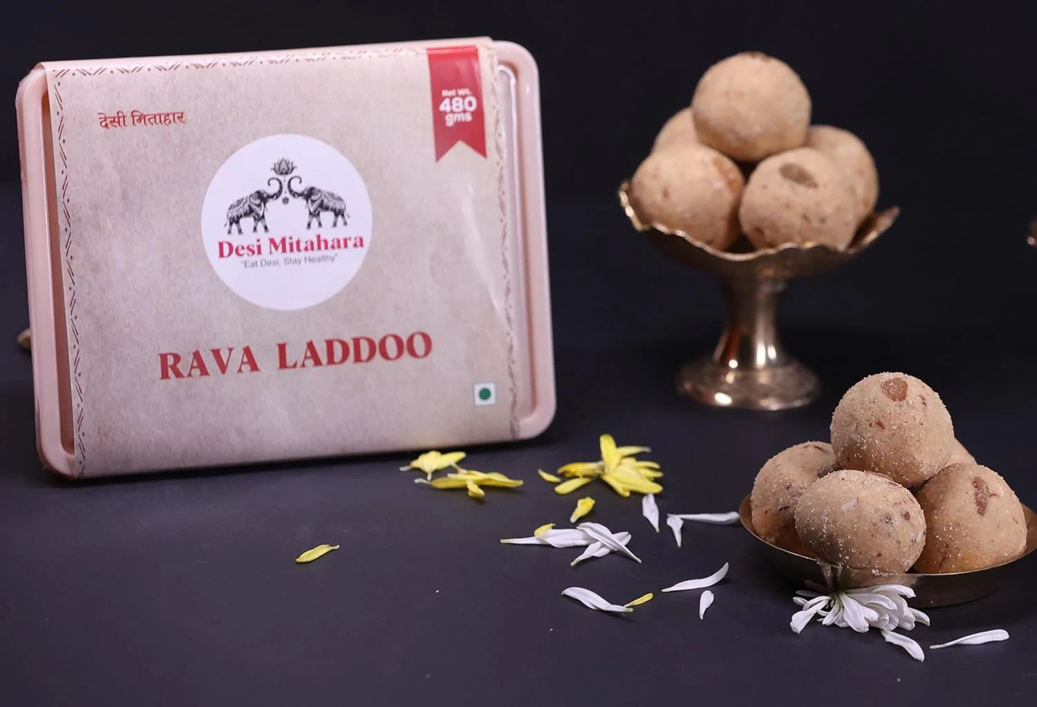 DESI MITAHARA – Rava Ladoo - Made with Rava, Caster Sugar & Cow Ghee - Traditional Indian Sweet - Healthy, Nutritious Snack - 480g Pack - No Artificial Colours - Suitable for All Ages