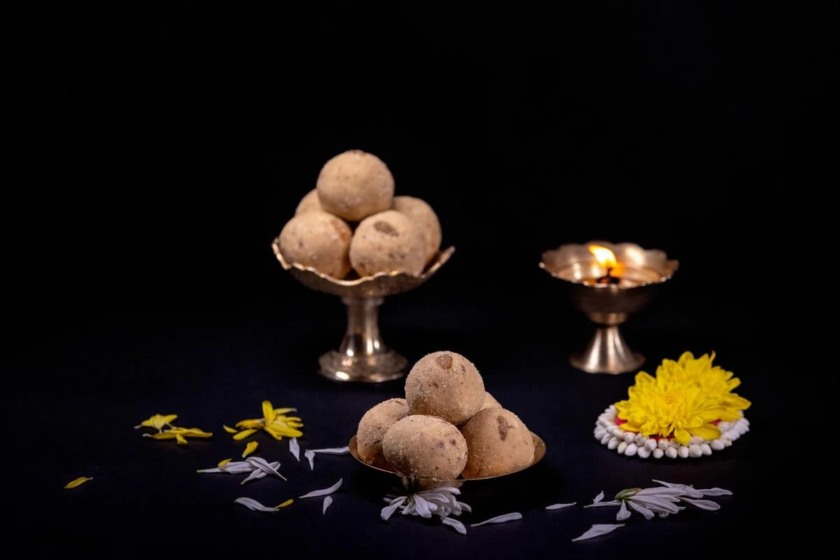 • Sweetened with Jaggery: Instead of refined sugar, these ladoos are prepared with jaggery, which lends a rich, caramel-like flavor and a naturally golden hue.