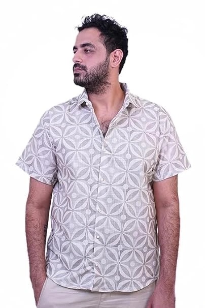 DIOS DAMROOS Men's Abstract Pattern Short Sleeve Shirt, Lightweight Breathable Casual Wear (in, Alpha, M, Color 2)