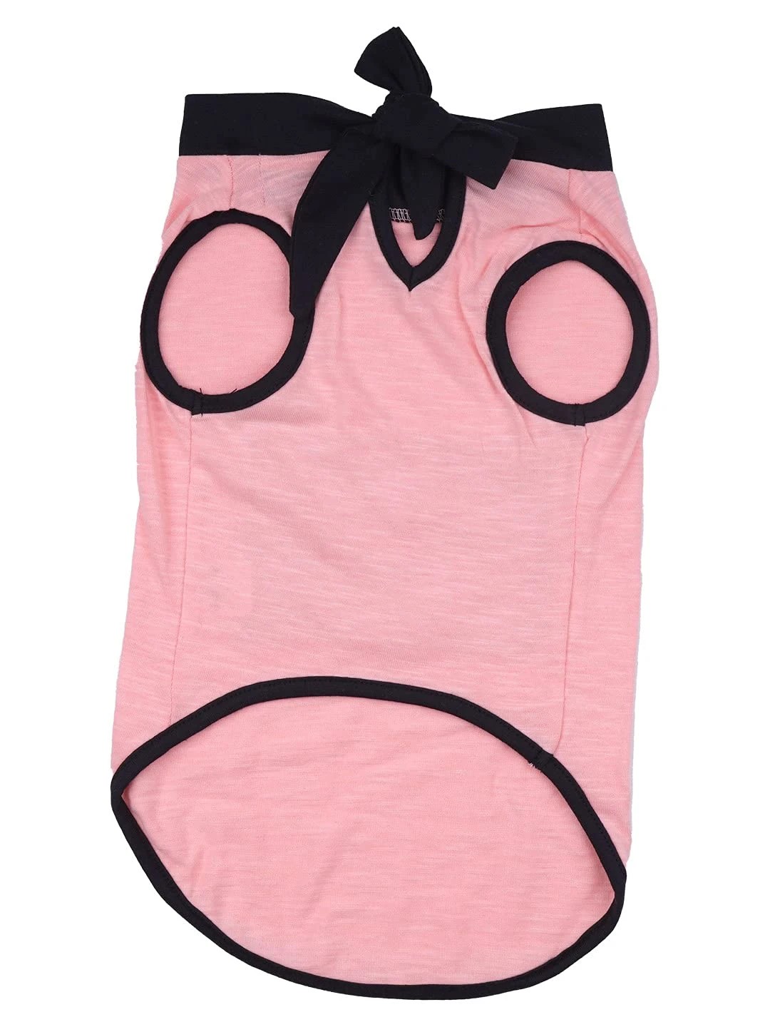 Dog Shirt Pet T-Shirt Sleeveless Plain T-Shirts with Knotted Bow Tie Colorful Sweatshirt Hosiery Fabric Breathable Mesh Dogs Camouflage Cute Comfortable for Dogs Cats Puppy (XS, Pink)