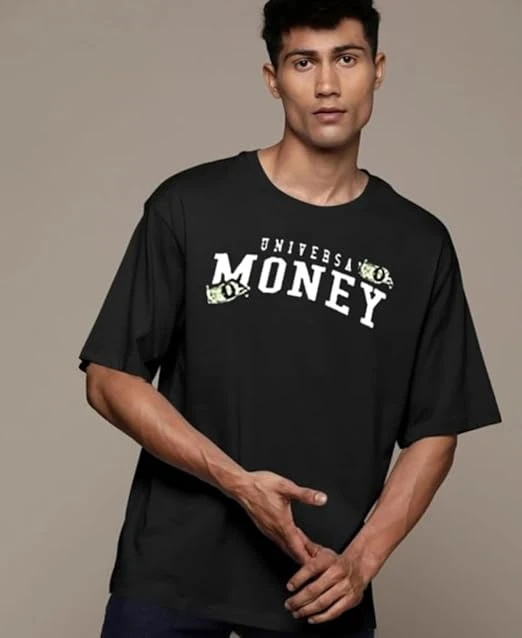 Earthwave Graphic Print Oversized Cotton T-Shirt, Half Sleeve, Round Neck, Casual Streetwear (in, Alpha, Small, Black)