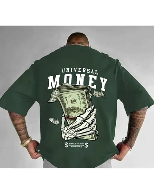 Earthwave Graphic Print Oversized Cotton T-Shirt, Half Sleeve, Round Neck, Casual Streetwear (in, Alpha, Medium, Olive Green)