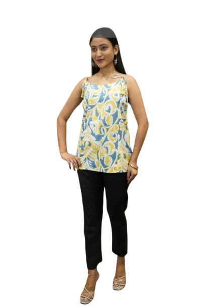 Vibrant Floral Design: The sleeveless top features a stunning floral pattern that adds a pop of color and a touch of femininity to your wardrobe.