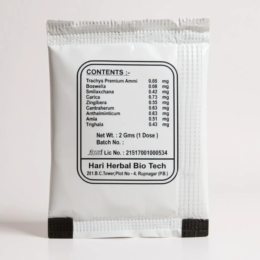 Ayurvedic Pharmacy For Joint Pain Relief Powder, 2 Gram Each Pouch Color Green (14 Sachets)