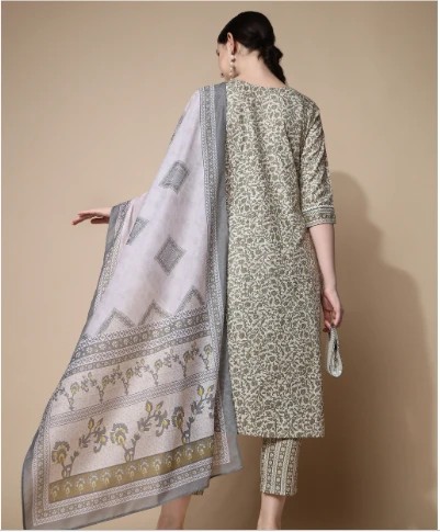 Green Cotton Blend Kurta Set For Women