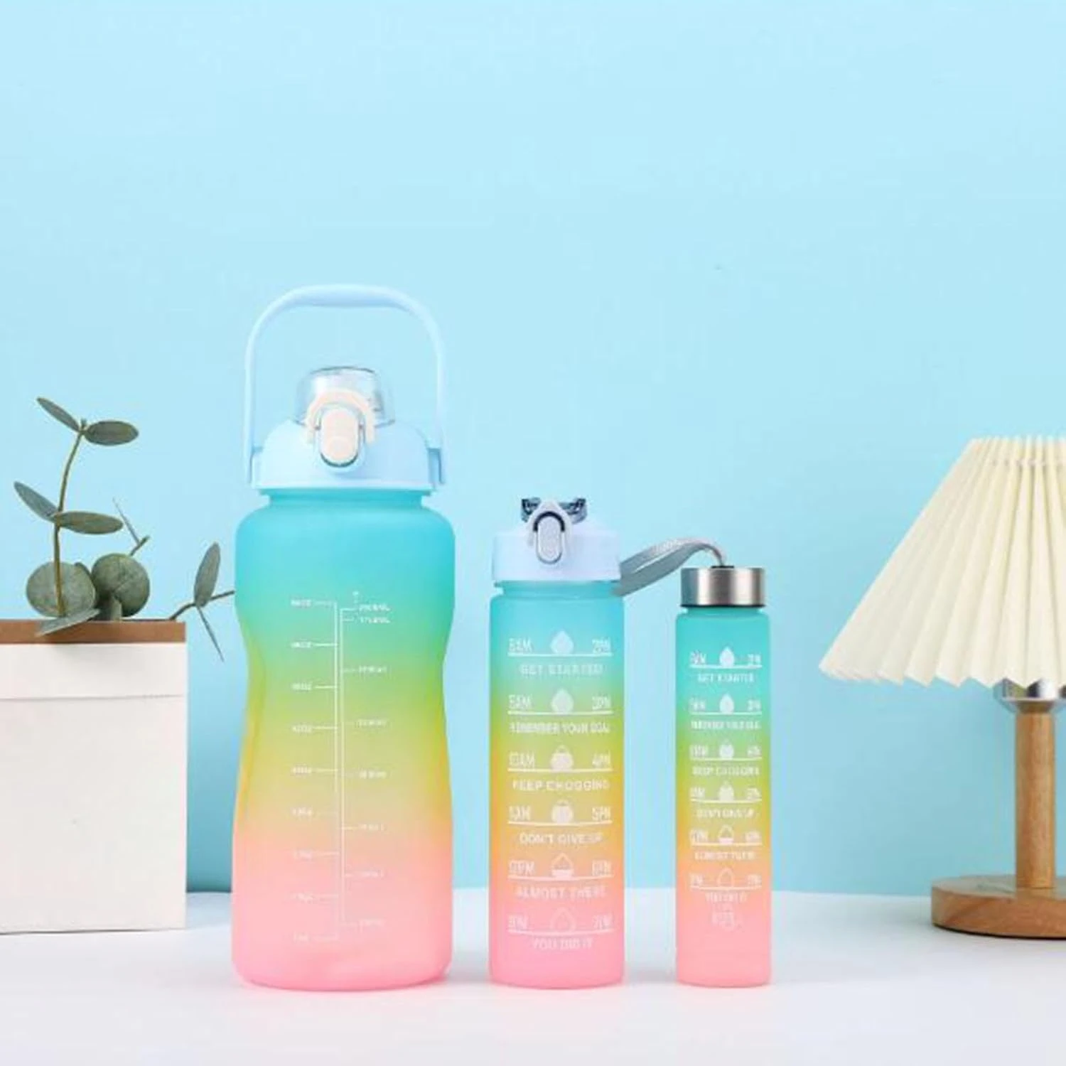 Gym Workout Water Bottle Hydrate with Purpose leakproof BPA-free Sipper Bottle Pack of 3 (300Ml 1000Ml 2000Ml) SET OF 2