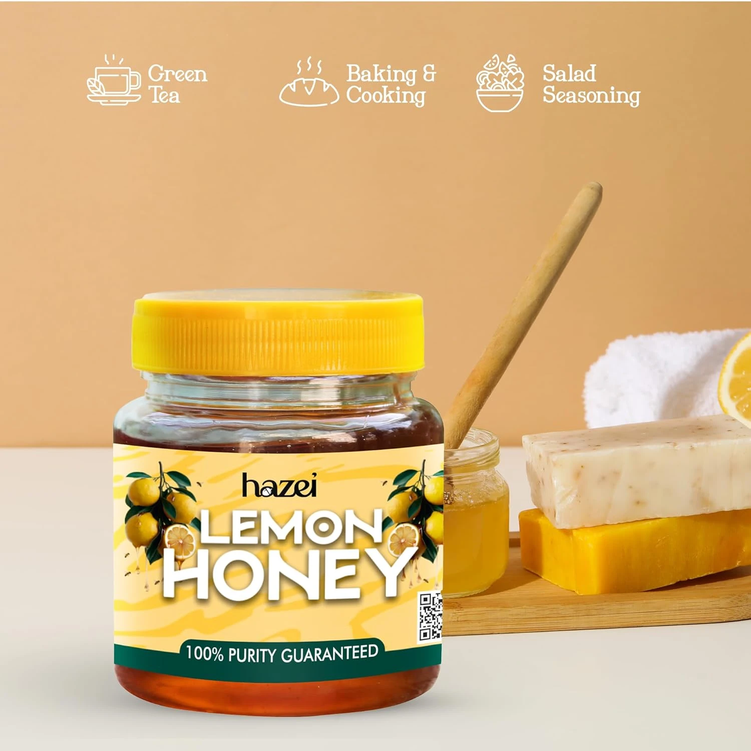 Hazei Lemon Honey 500g - Unique Refreshing Taste, Great for Weight Management and Fitness | 100% Pure & Natural Honey | Unprocessed Natural shahad | Healthy, Rich in Vitamins and Minerals PACK OF 2