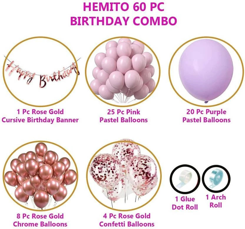 Kapoor stores Birthday Decoration Kit 60 pc – Pink Purple Pastel Balloons Combo (Set of 60)