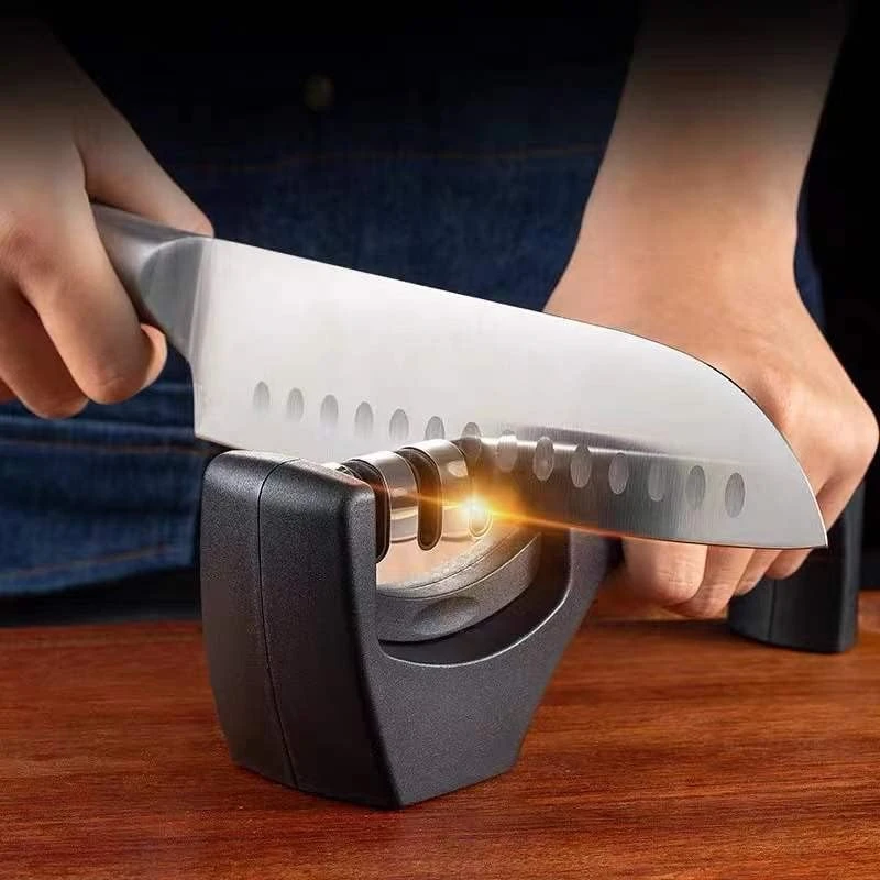 Knife Sharpener 3-Slot Quality Kitchen Accessories to Repair, Grind, Polish Blade, Professional Sharpening Tool for Knives, Easy Manual Sharpener.Cut-Resistant Glove Included, Black