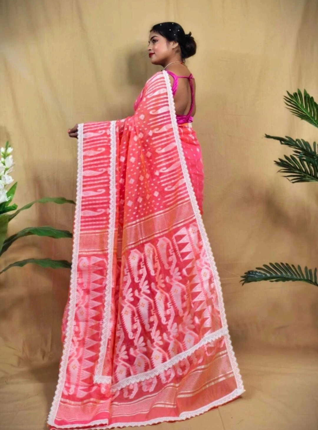 Most Trendy Jacquard Work Woven Saree with Unstitch Blouse Piece Color Pink Pack of 1