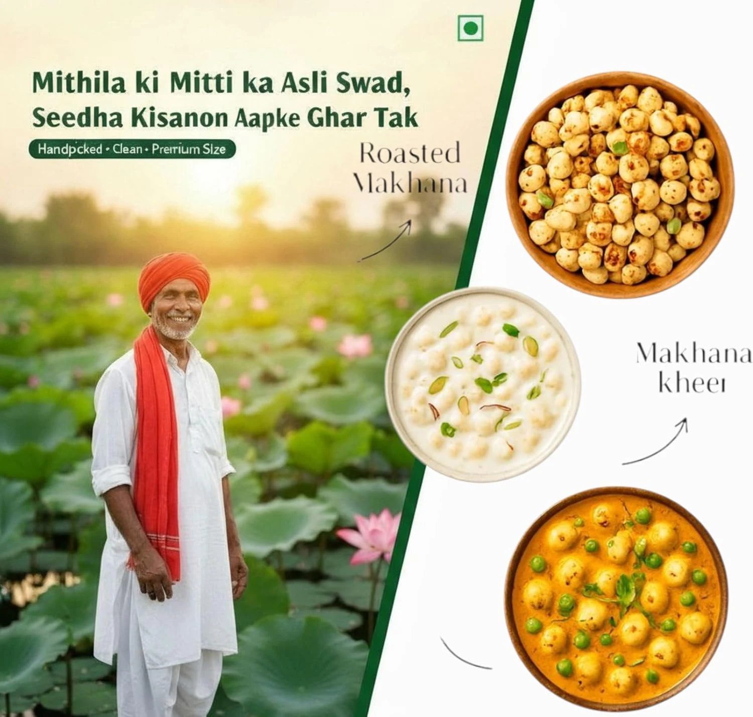 Premium Makhana 250g | High Protein & Big Size | Handpicked Mithila Phool Makhana | Healthy Vegan Snack | Farm Fresh | No Added Salt | Gluten Free