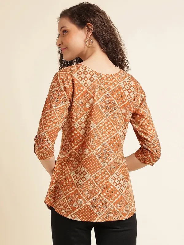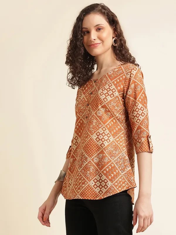 Brown Rayon Slub Casual Daily Wear Top For Women