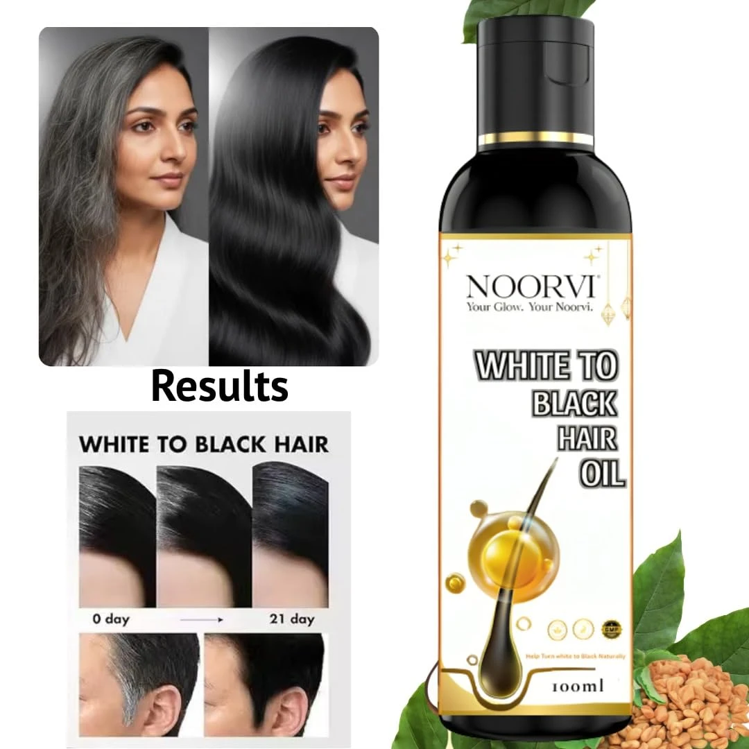 NOORVI White to Black Hair Oil, Natural Ayurvedic Blend with Bhringraj, Coconut, Olive, Castor Oil for Grey Hair Treatment, 100ml.