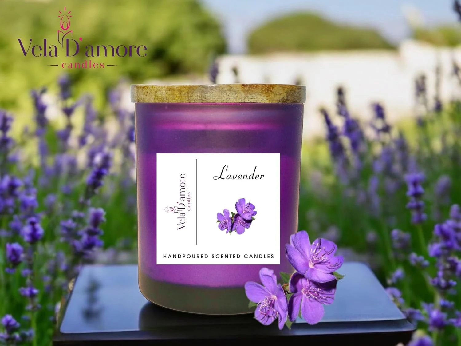 Organic Hand Poured Soy Wax Scented Jar Candles with Wooden Lid (250 ml) (Lavender)