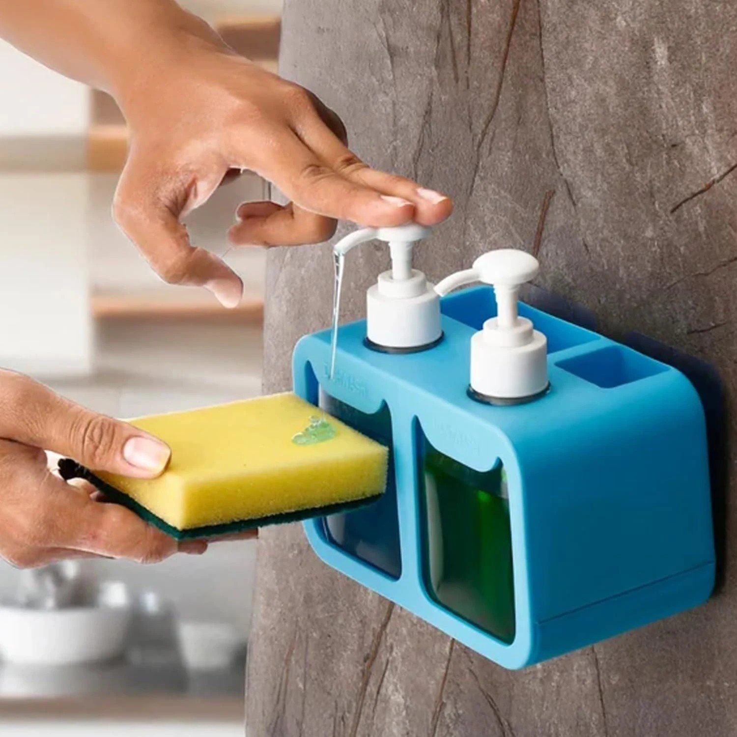 Outdoor Living Twin Designe Liquid Soap Dispenser, 300ml, Multipurpose Refillable Plastic Pump for Hand Wash, Dish Wash, Shampoo, Kitchen, Bathroom, and Household Use Color Blue