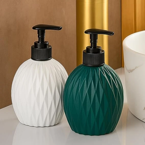 Outdoor Living Dimond Cut Design Liquid Soap Dispenser, 300ml, Multipurpose Refillable Plastic Pump for Hand Wash, Dish Wash, Shampoo, Kitchen, Bathroom, and Household Use Color Green White Pack of 2