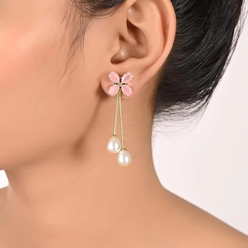 Pink Color Gold Plated Sparkling Colors Pearl Dangle & Drop Earrings Tops Women/Girls