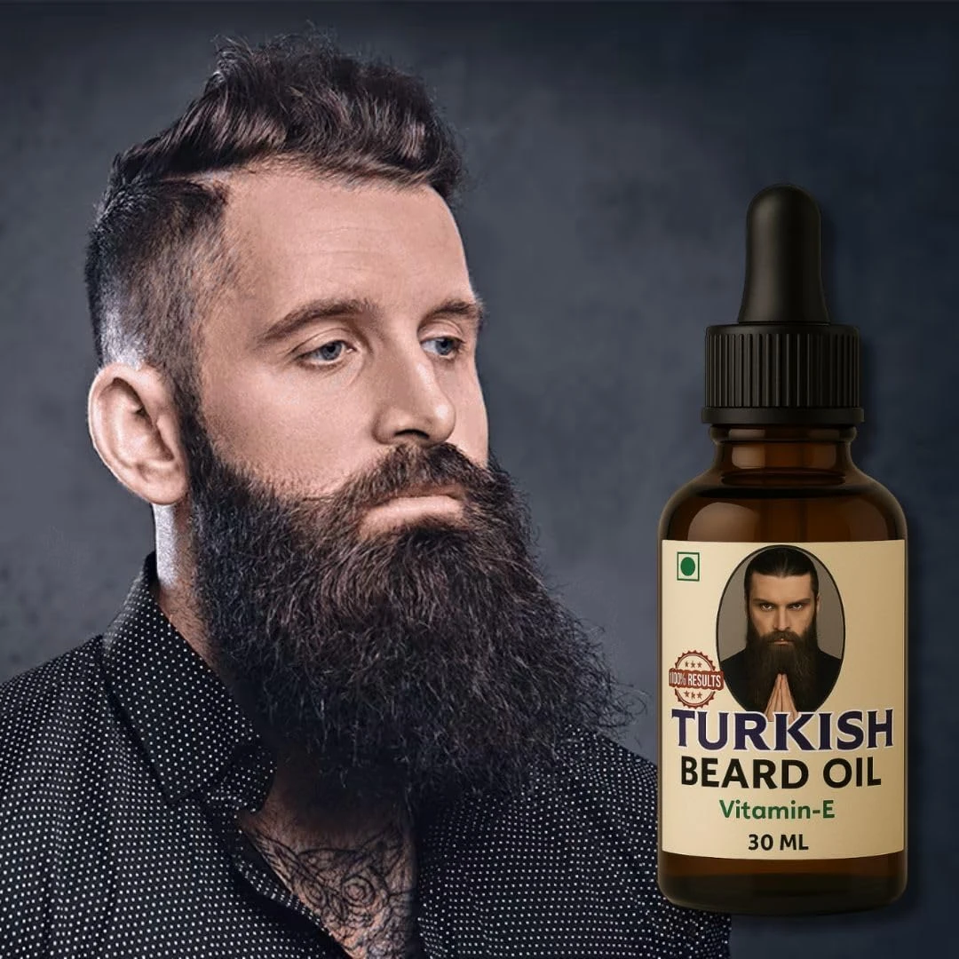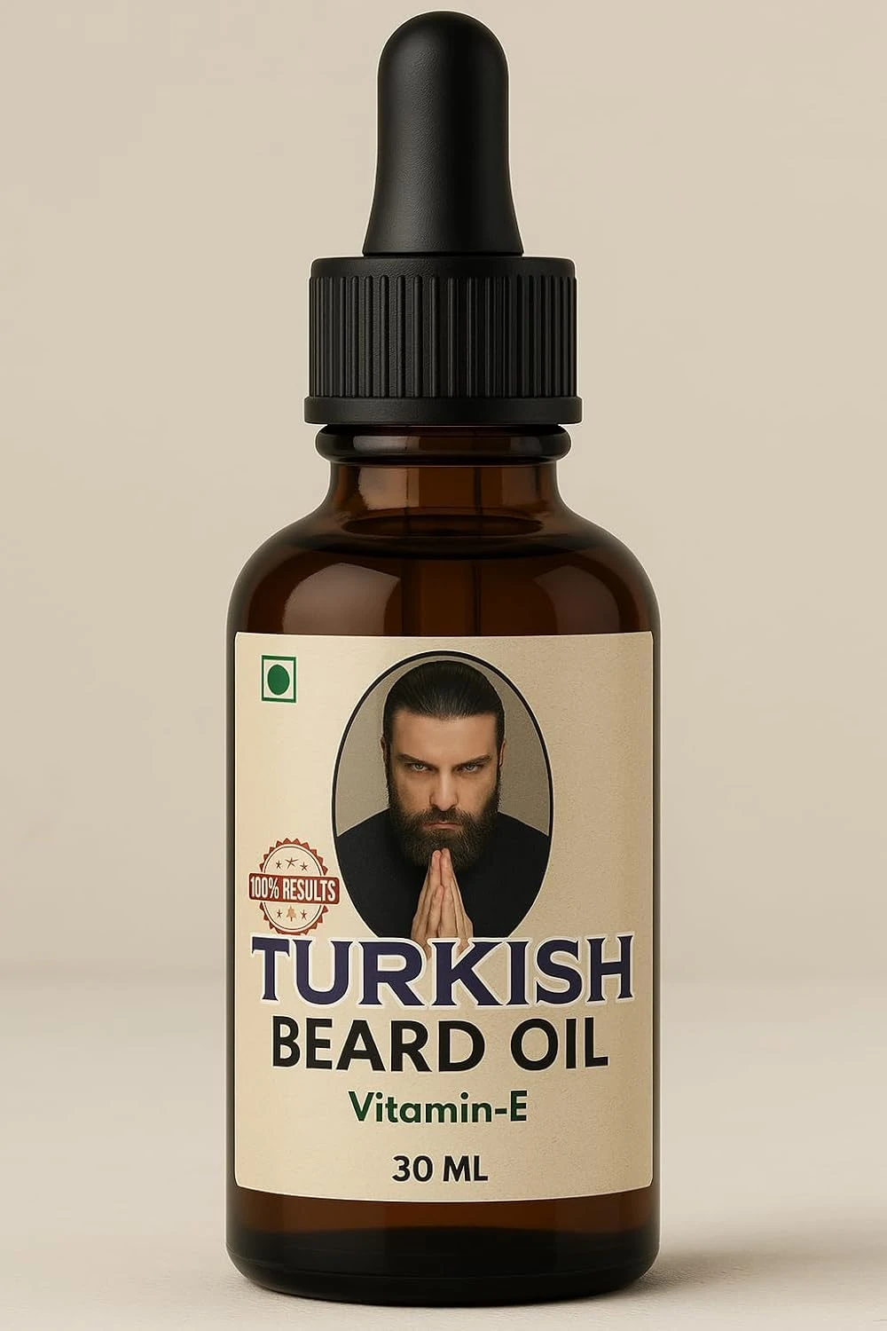 Premium Turkish Beard Oil with Vitamin-E, Growth Formula, Long, Shinny, Black & Smoothen Hair, 30 ml