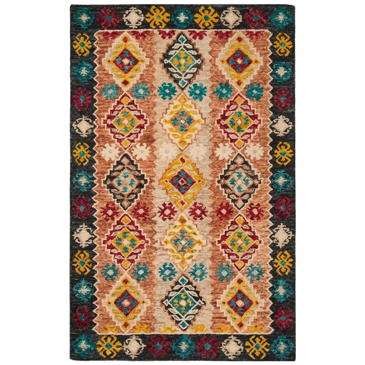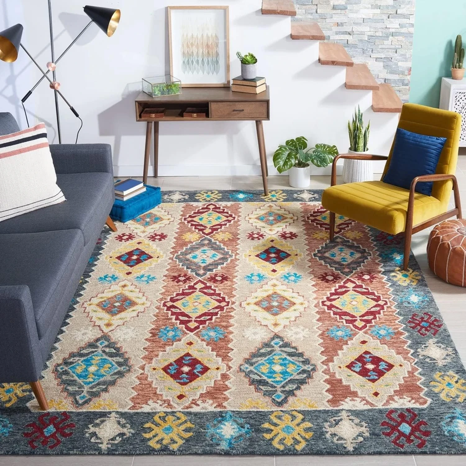 RH Enterprises Handmade Woollen Rug, Loop Pile Textured Yarn, Anti Shed Carpet for Living Room, Bedroom, Drawing Room, Hall and Floor (Multicolor 03, 4' x 6' (Rectangular))