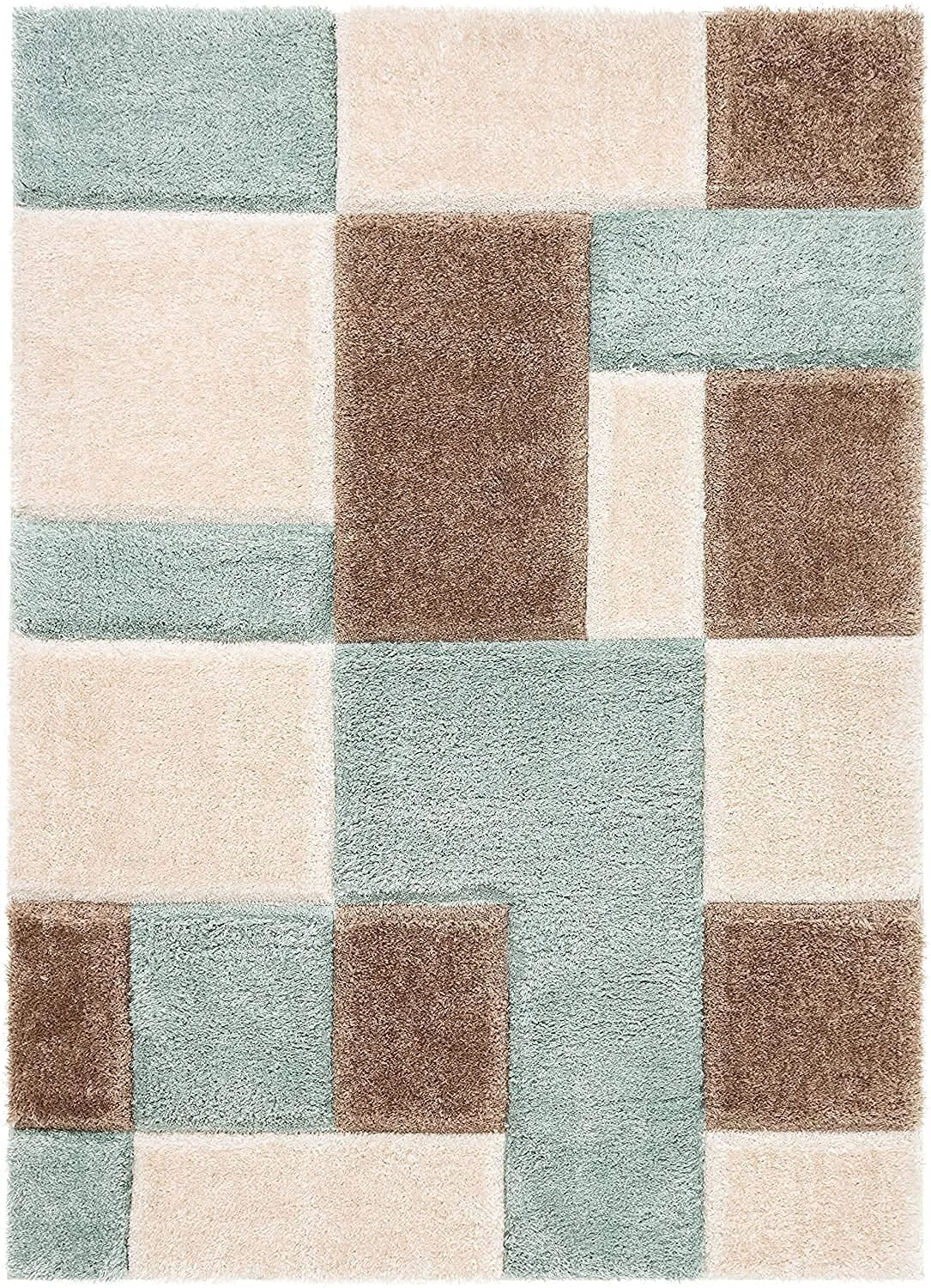 RH Enterprises Modern Geometric 3D Textured Thick and Soft Shaggy Fur Rectangular Rug & Carpet (Light Brown/Ivory/Multi, 5' x 7' (Rectangular))