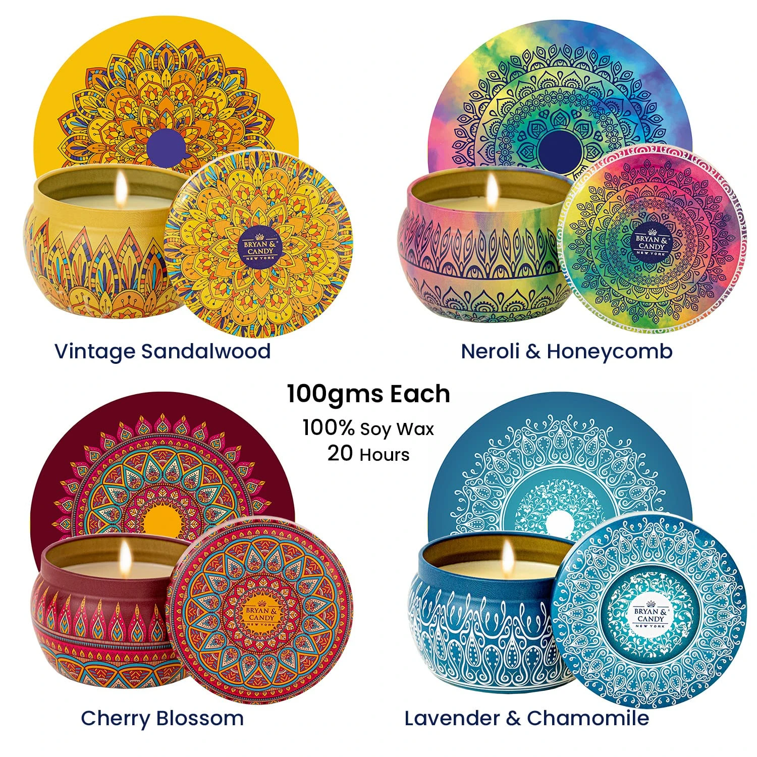 Scented Candles | Gift Set for Women & Men,Cherry Blossom,Vintage Sandalwood,Neroli & Honeycomb,Lavender & Chamomile Aromatherapy Candles