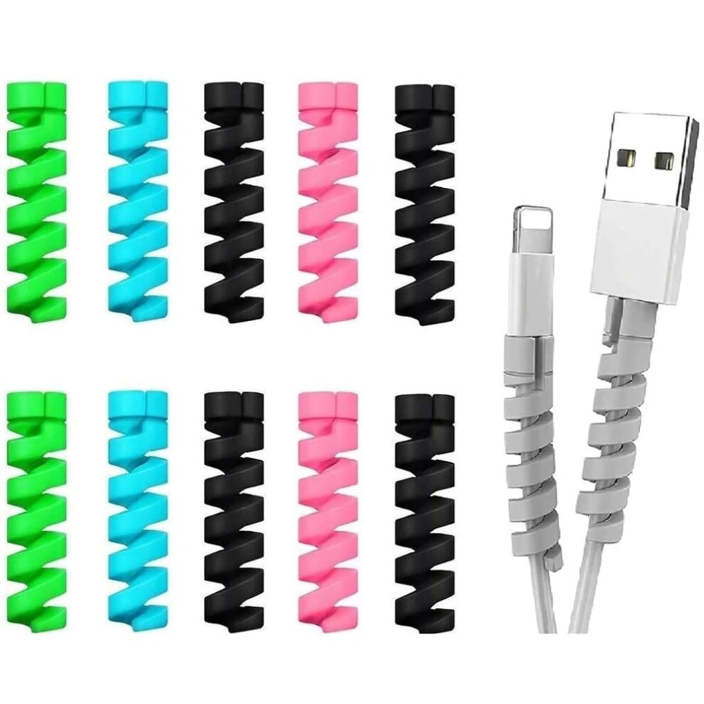 Spiral Charge Cable Protector – Universal Data & Charging Cable Saver Cover for Protection – Compatible with All Cables (Pack-10pc)