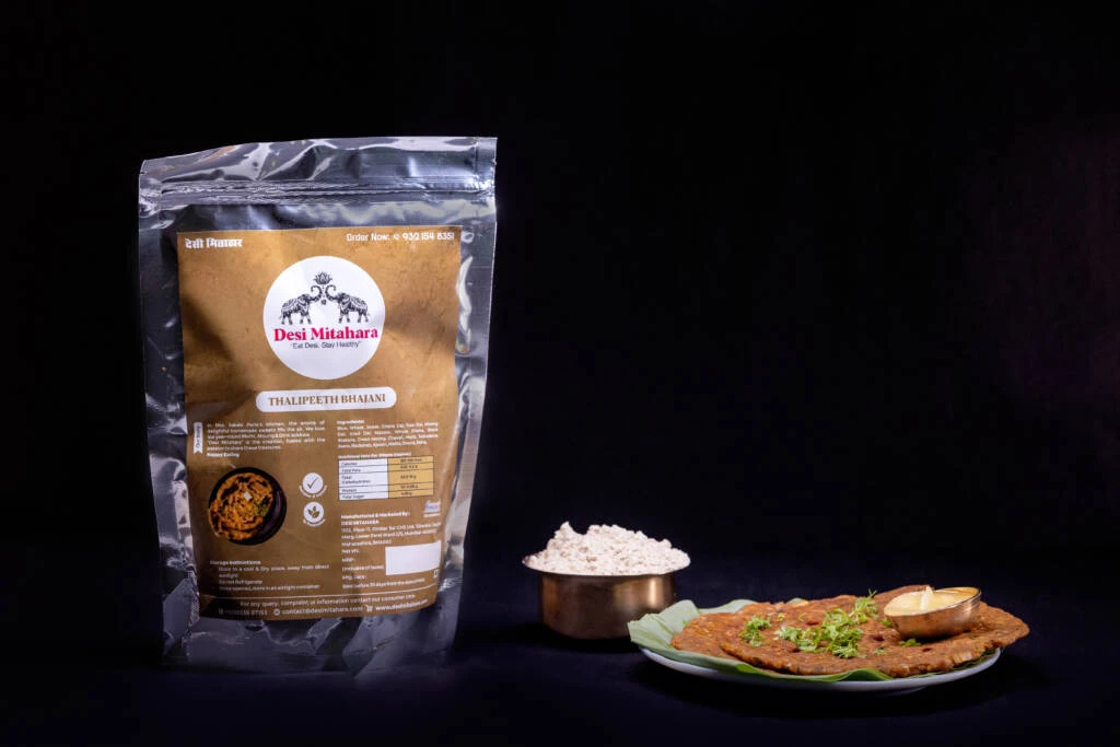 • Desi Mitahara’s Thalipeeth Bhajani (PURELY HOMEMADE) brings you the perfect blend of grains and spices to make the tastiest, and most nutritious Thalipeeth.