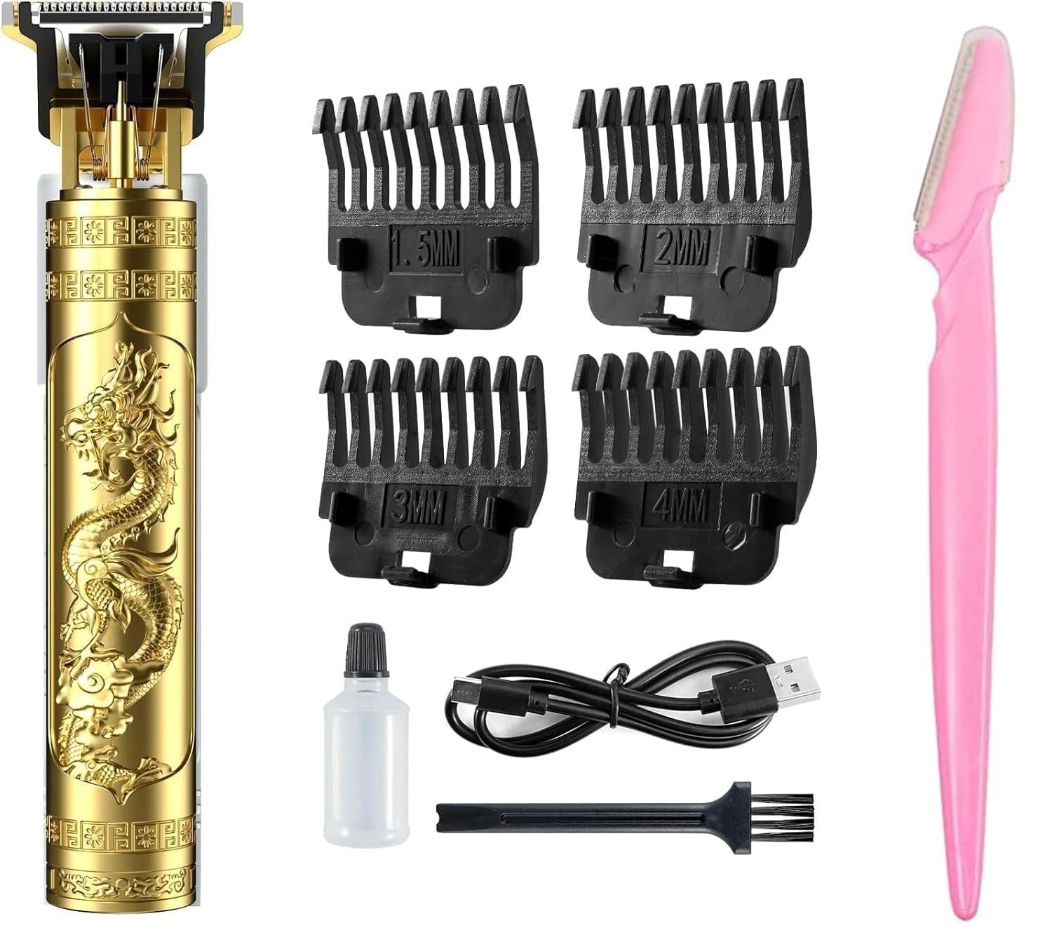 Trimmer Men Professional Cordless Hair Clipper Dragon And Buddha Style, Rechargeable Trimmer For Beard, Hairs, Moustache & Face, Electric T Blade Zero Gapped Shaving Machine (Gold) With Women Reusable Face Razor