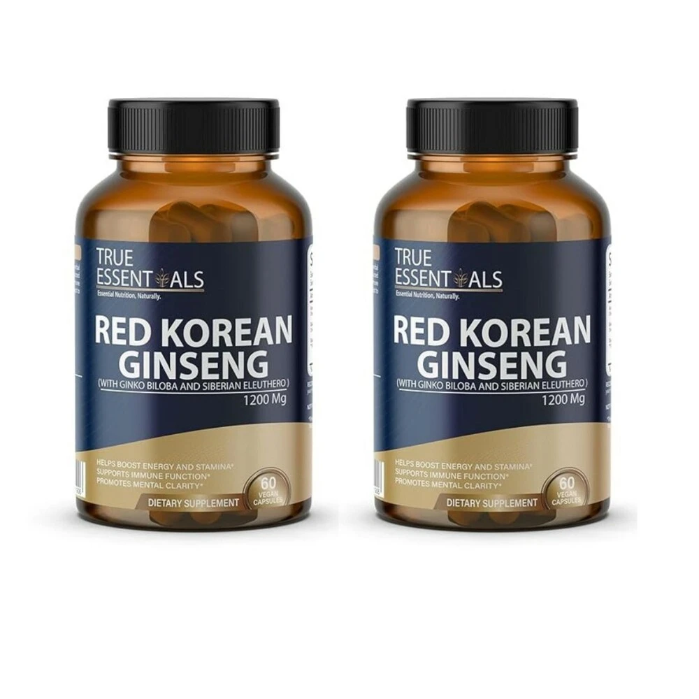 TRUE ESSENTIALS Tre Red Korean Genseng 1200mg 60 capsules | Helps Boosts Energy And Stamina Supports Immune function - Pack of 2