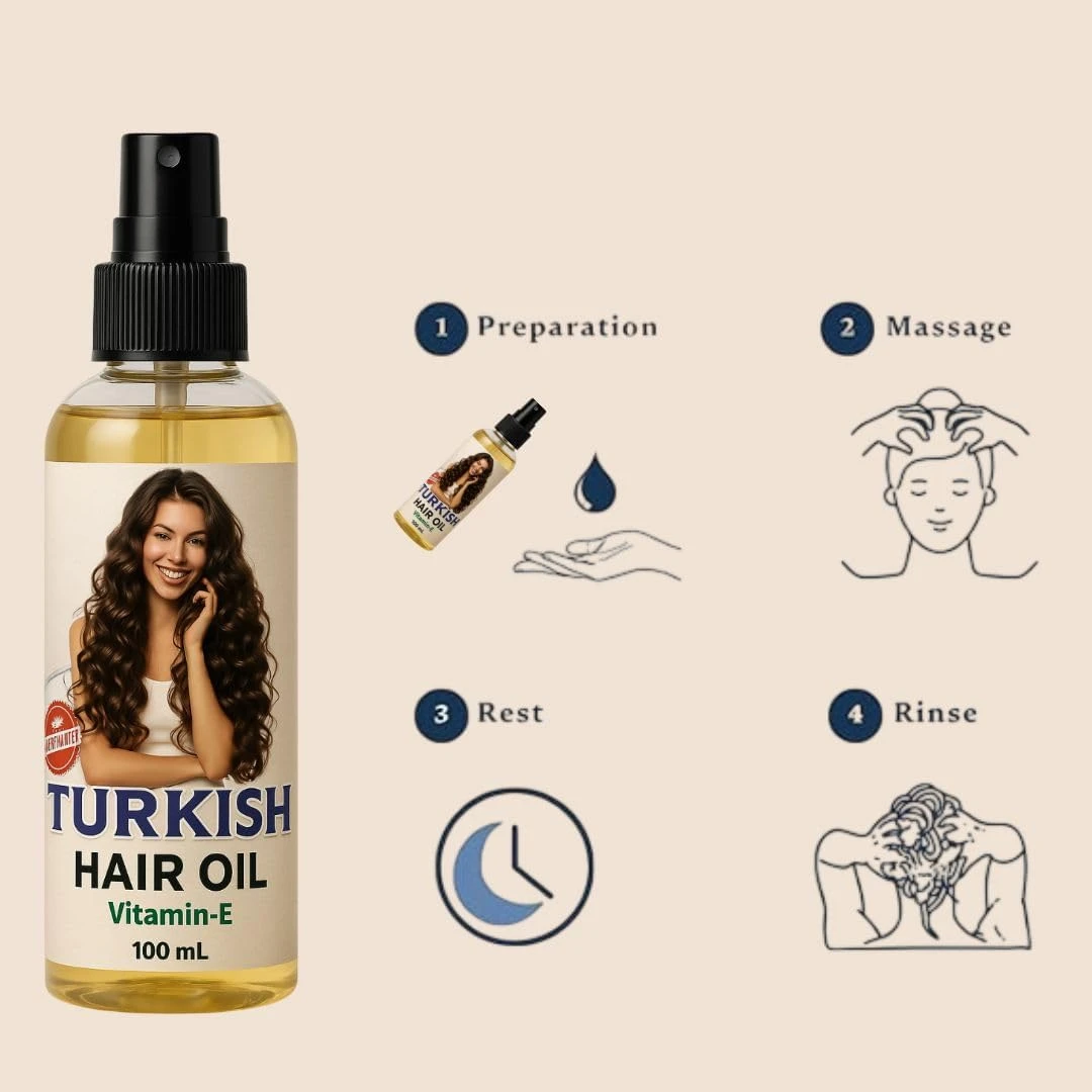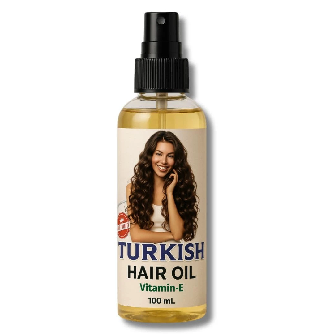 • Premium Turkish hair oil enriched with Vitamin E for deep nourishment and improved hair texture.