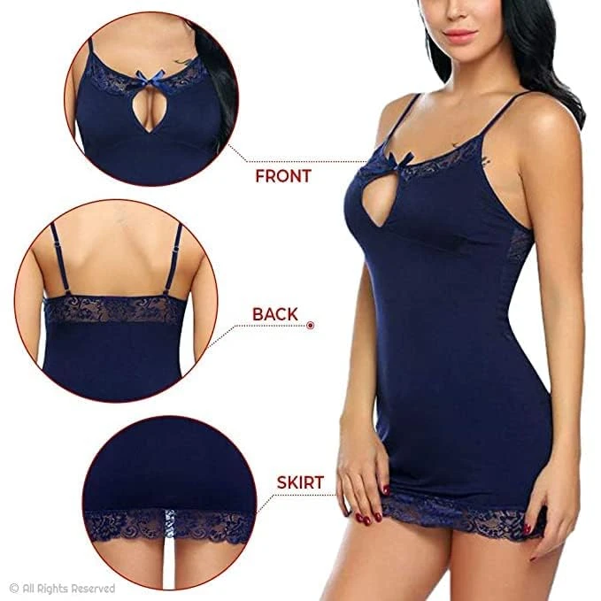 • Complete Set: Includes matching thong/panty for a coordinated look. Chic & Feminine: Lace-trimmed neckline and hem add a seductive, stylish touch