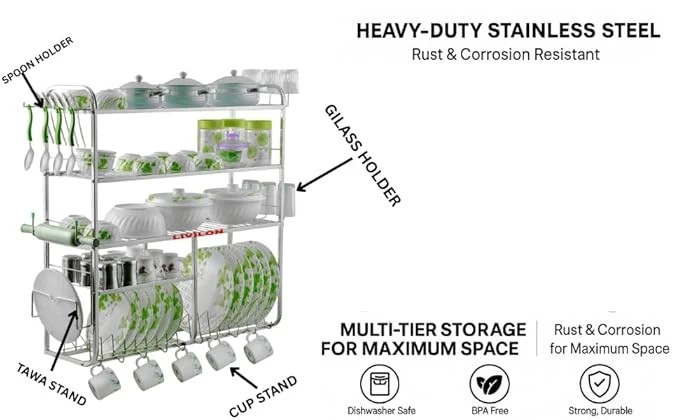 • Cleaning Methods: Wash the utensils kitchen storage rack from small amount of vim bar with a wet scrubber. Wipe it thoroughly with a cloth and then you will see that your rack will shine in a different way
