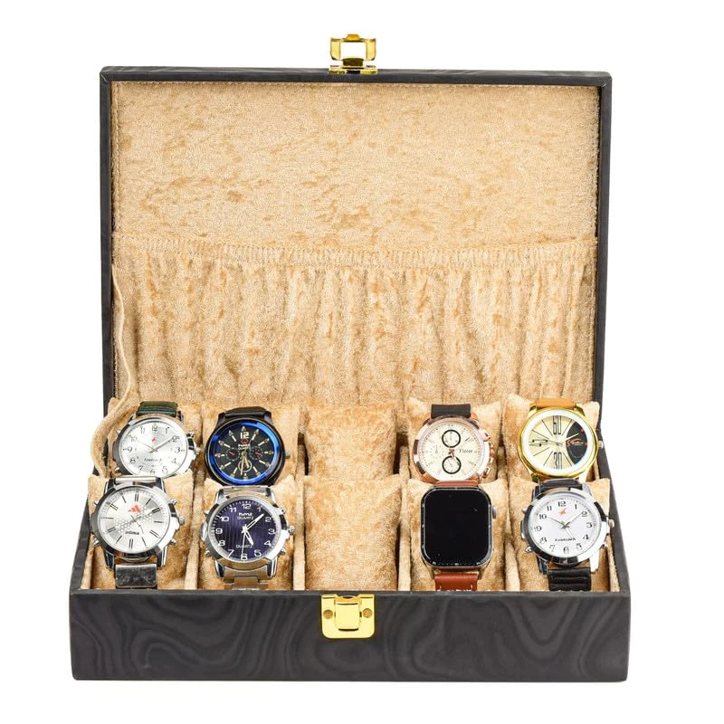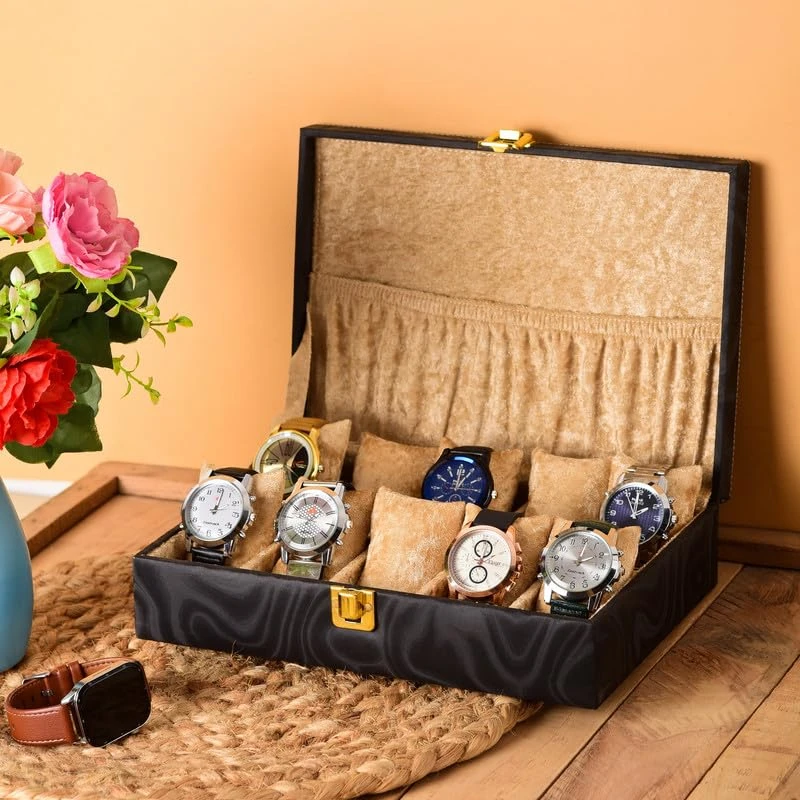 4 Slots Brown Unisex Watch Box Organiser Watch Box (Brown&Black, Holds 4 Watches)