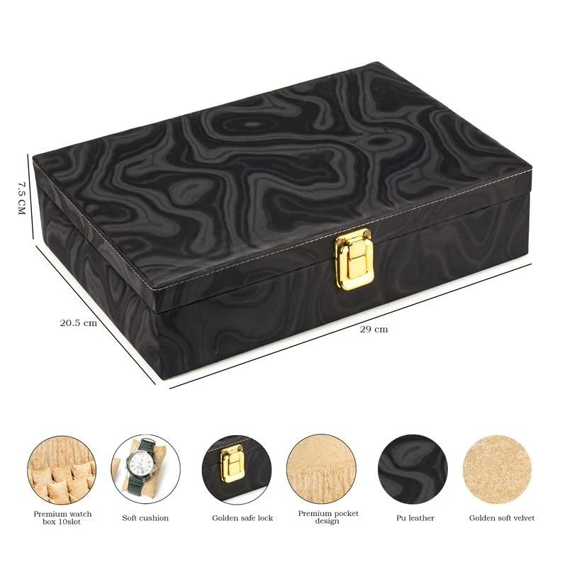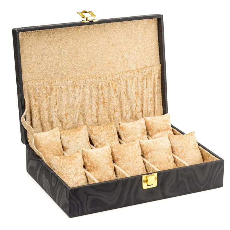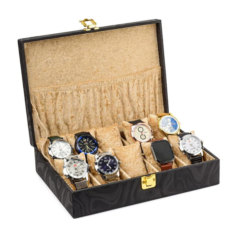 Watch Box Organizer for Men & Women Gift Box – Durable Leatherette with Soft Velvet Pillows (Black::Beige, 10 Slots)