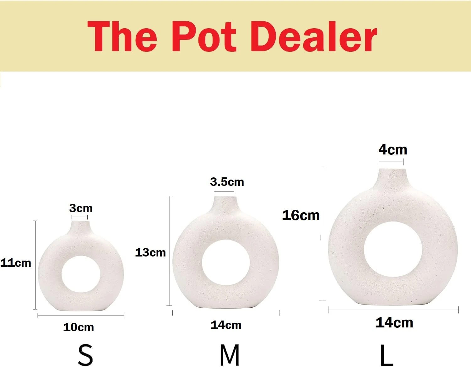 White Donut Vase Hollow Ceramic Vase for Flowers Handmade Minimalist Style Modern Home Decor Round Shape Table Party Living Room Office Bedroom (Pack of 3 S,M,L,) | Pack of 3