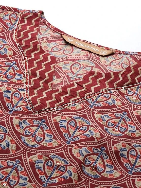 Women Cotton Straight Printed Suit Set Size Medium Color Maroon