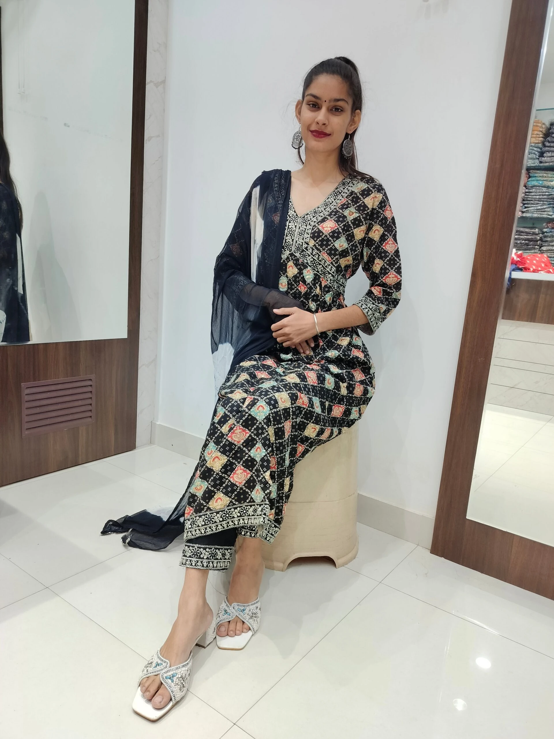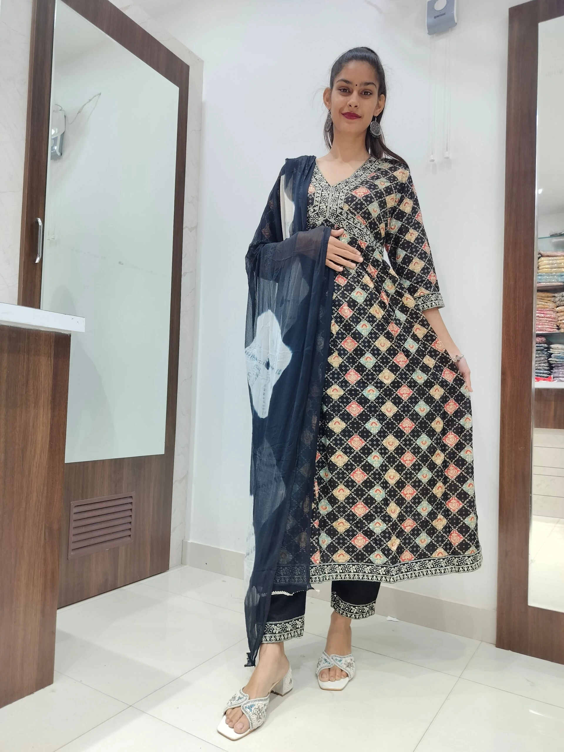 Women's Aliya with anarkali pattern Embroidered Kurta with Pant and Dupatta Set Size Medium Color Multicolor