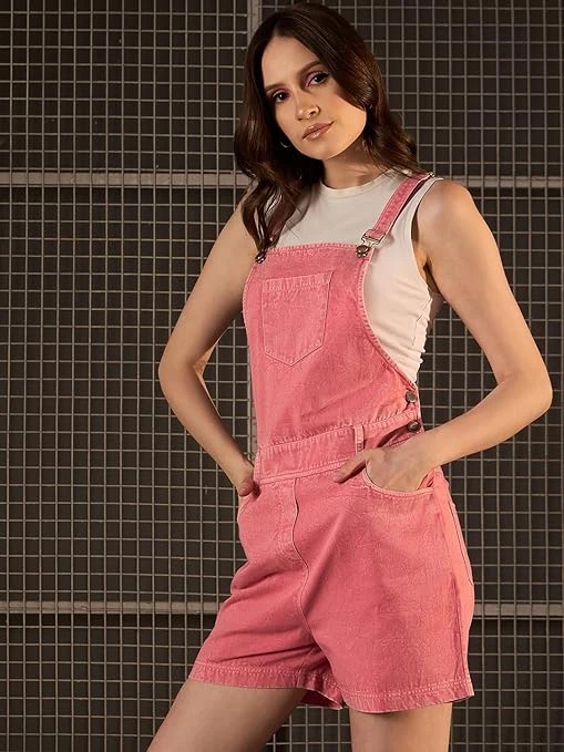 Women's Denim Shorts Dungaree (T shirt not included) Size Medium Color Pink