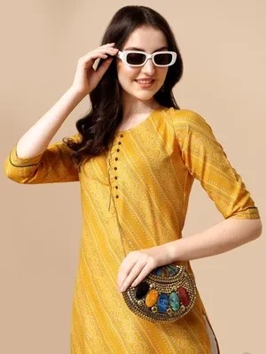 Yellow Cotton Blend Solid Tone Kurta For Women